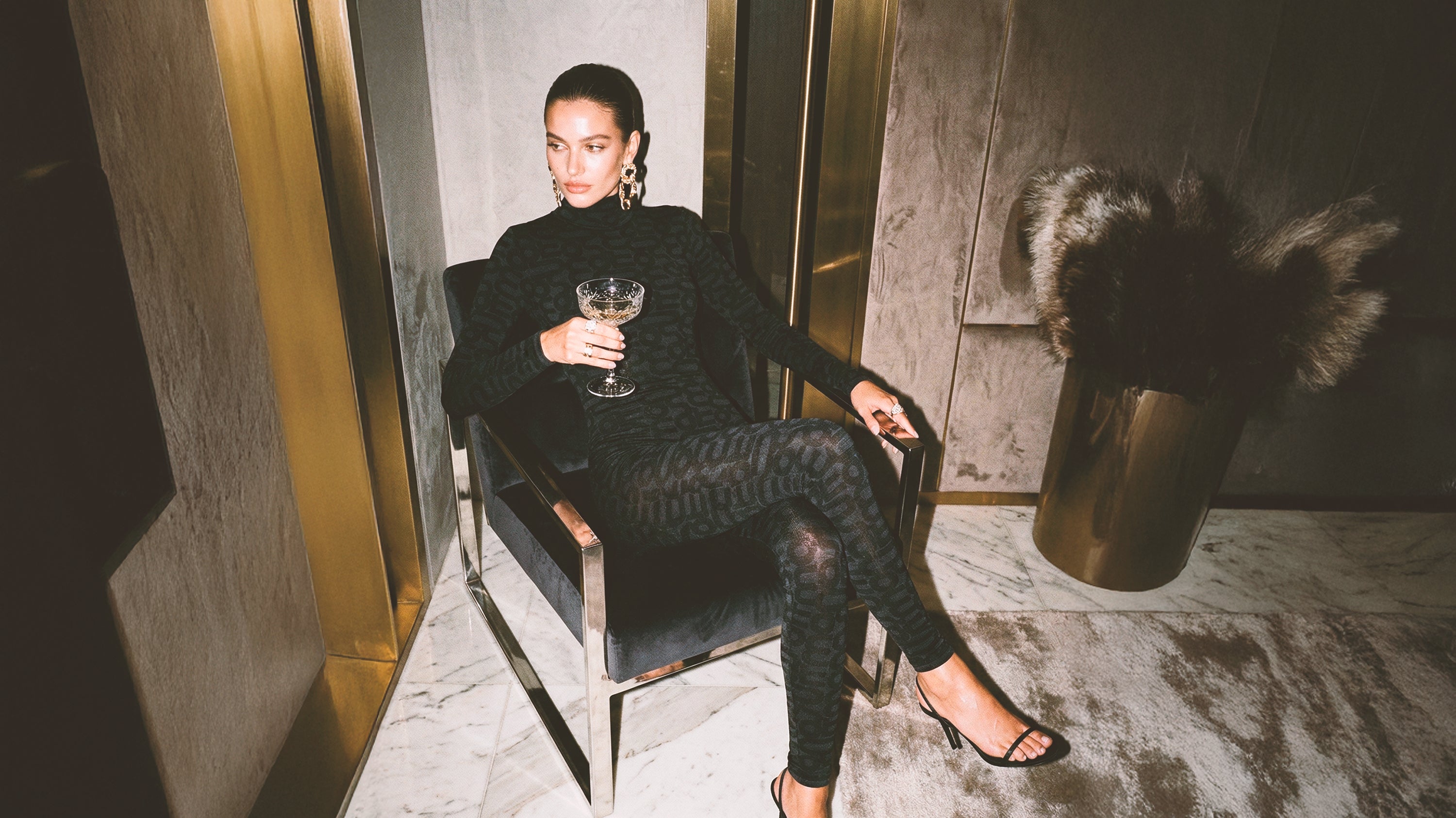 Noir Blossom Long Sleeve High Neck Full Bodysuit Total Black & White