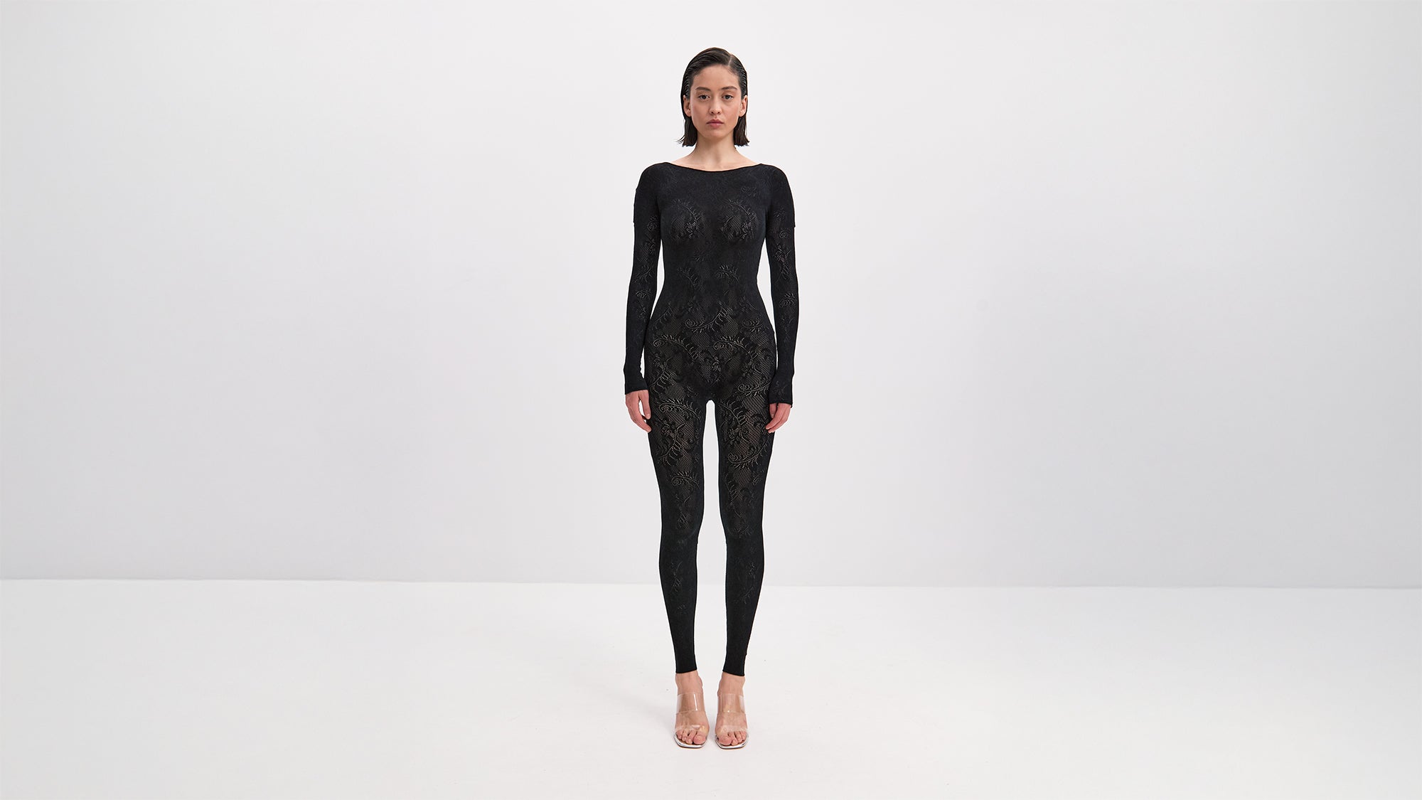 Crafted in Italy from premium regenerated nylon, this high-performance lace bodysuit combines timeless elegance with modern innovation.